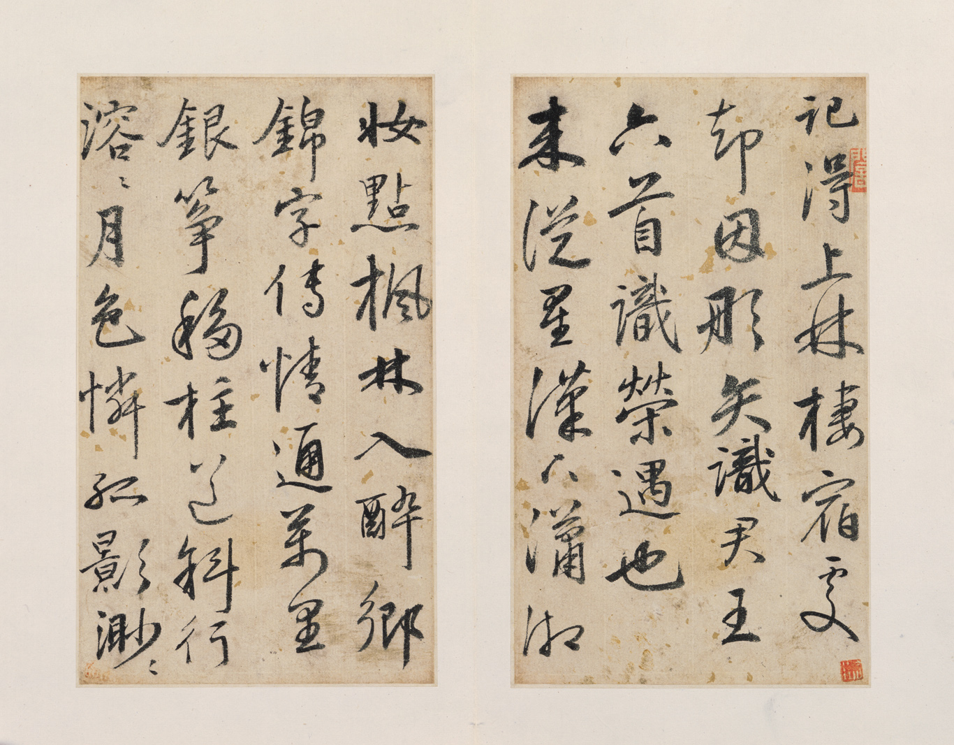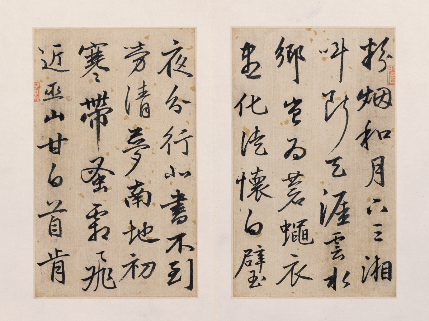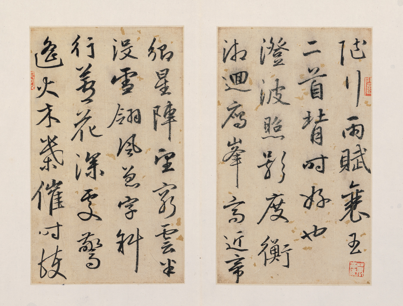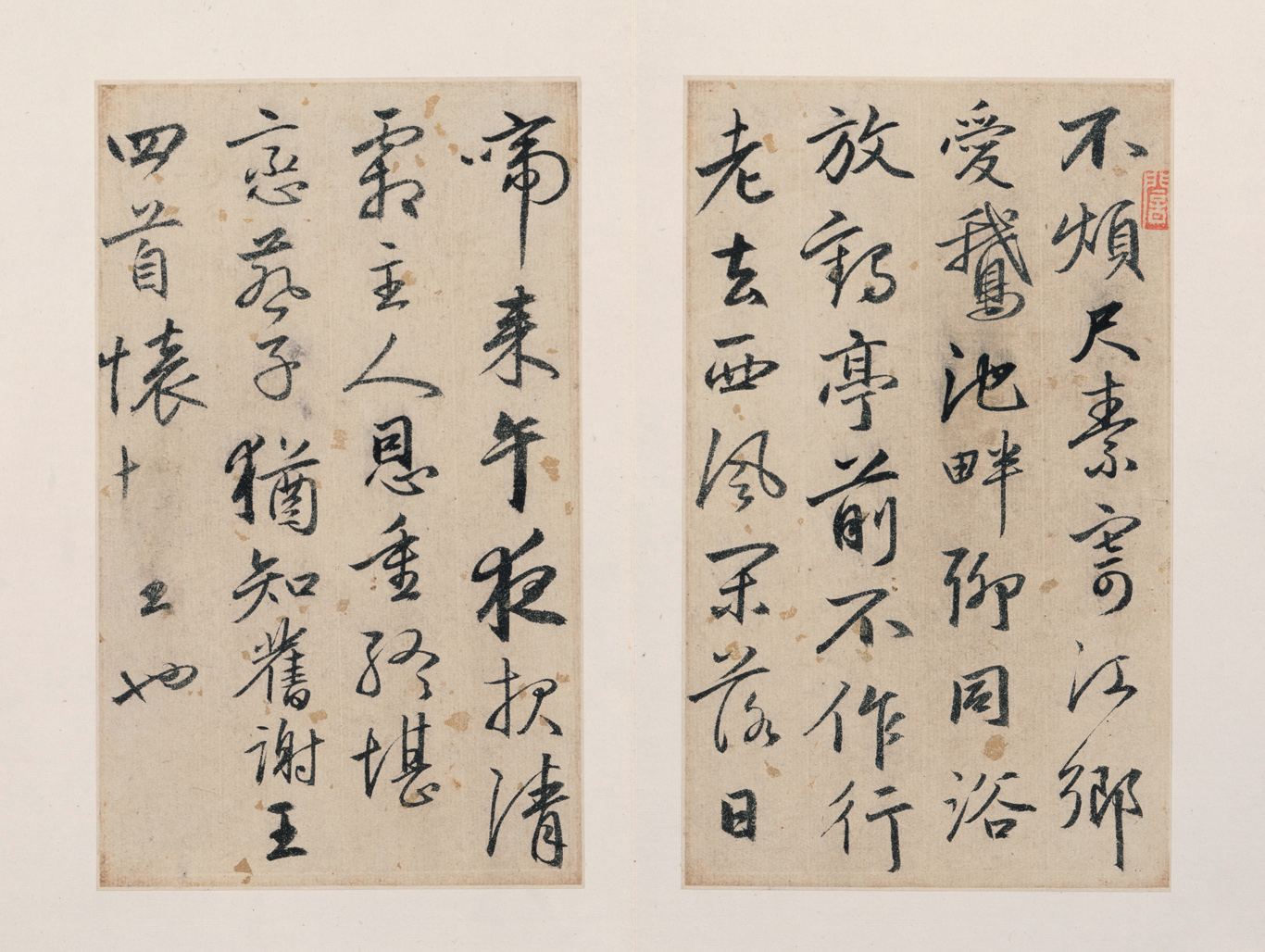 近墨堂書法研究基金會所收藏的陸深《白雁詩》冊,一直流傳於民間,未收入於清宮內府,所以整幅作品上沒有清宮的收藏璽,但不影響其文物的珍貴價值。對於古代傳世於今的作品,多會以流傳有緒的重要書畫著錄來檢證作品的真確性,於是記載於《式古堂書畫匯考》與《石渠寶笈》的陸深《白雁詩》手卷,似乎比較有較高的名聲。然而,有另一種具有說服力的檢證材料,卻比較少人所使用,即是和作品出現時代相近的刻帖,之所以少引用,主要是刻帖流傳的數量會遠比文字著錄還少得許多。令人可喜的是,陸深《白雁詩》冊正好刻於晚明的《寶翰齋帖》中。(圖1)《寶翰齋帖》全名《寶翰堂國朝書法》,選編者茅一相,刻者章田、馬士龍、龍榮甫。茅一相,字國佐,號泰華,又號康伯,浙江歸安人。浙江歸安中茅姓,時間又約在此期的有名人物為茅坤(1512-1601),茅坤的長兄毛乾(1506-1584)在萬曆十二年逝世時,撰有〈伯兄少溪公墓誌銘〉一文提到「子男二人,曰:一相、曰:一桂,俱太學生,可知茅坤是茅一相的叔父。