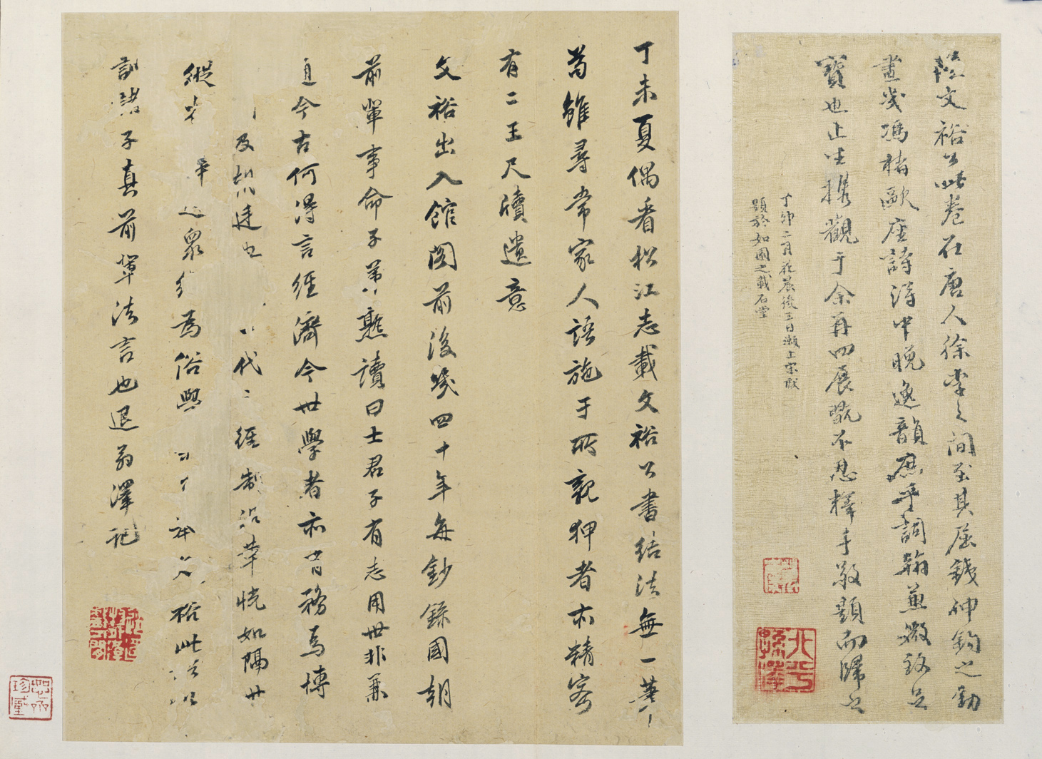 陸文裕公儼山先生書法雅宗松雪,晚鎔北海,西晉風骨,宛然具存,足傳不朽。聞之先生平居,雖尺簡裁答,必精墨翰、工結構,即所甚暱,應之造次不廢也。