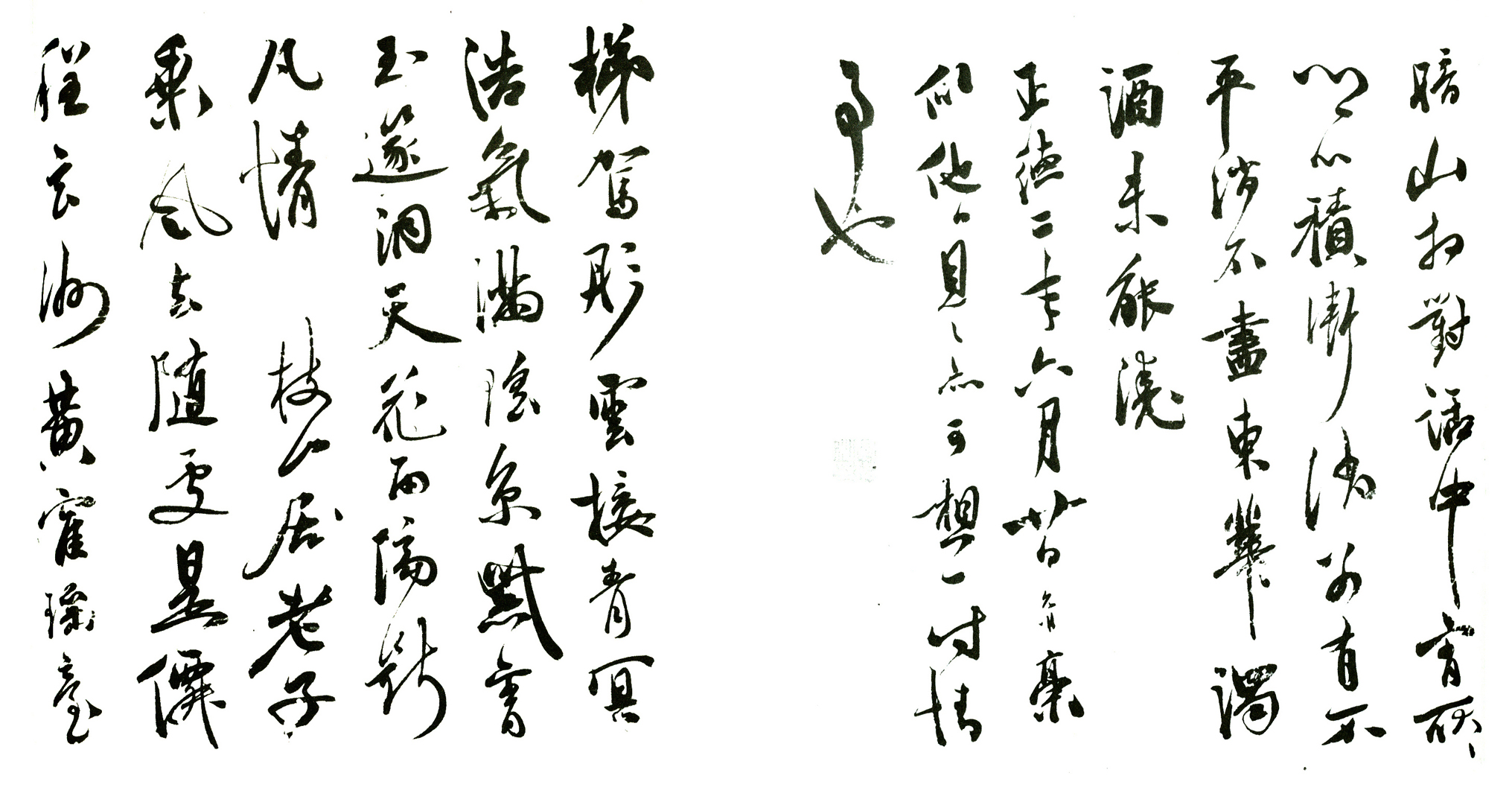 2. 從內容上看,戴文指出故宮卷中《登太白酒樓卻寄施湖州》一詩,脫句兩處共四句,戴先生認為這有悖常理。筆者認為以此作為指認偽作的證據力不足。依據跋文,可以想像當時的場景:祝允明做客王家,飲酒正酣,朋友謝雲莊加入,“頗以酒倦”時,當場揮毫寫下舊詩數首,朋友雲莊“口誦予舊作”才幫助將詩卷書寫完。此時,這位六十四歲的枝山公,乘醉興筆,豪縱之氣躍然紙上,忘詞漏句正有可能,若以此認定為偽作,則天下多少書作皆不可倖免。