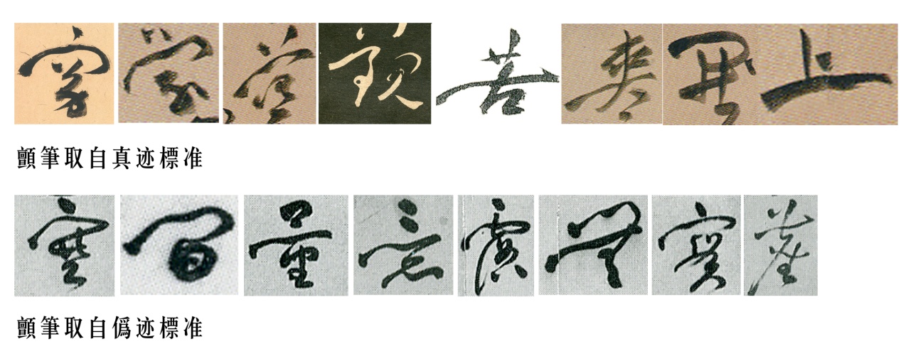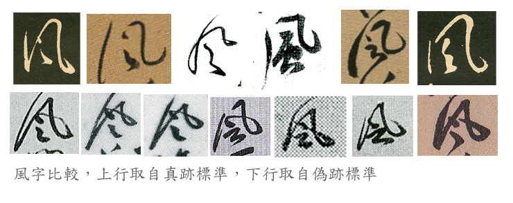 考察以上的真偽標準,我們可以發現,在所列真跡標準中,找不到一件與偽跡標準相似的作品,反過來也一樣。