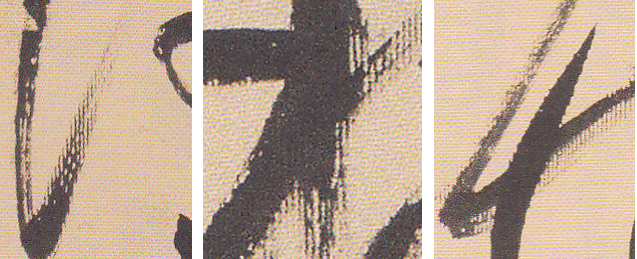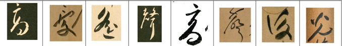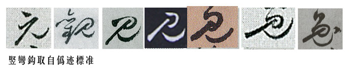 - 以上步驟一一過關後,才進入關鍵性步驟:取待鑒定書法個別單字或字組,與真偽標準件中“高價值特徵字”進行比對。所謂筆跡學所說的“高價值特徵字”是指: