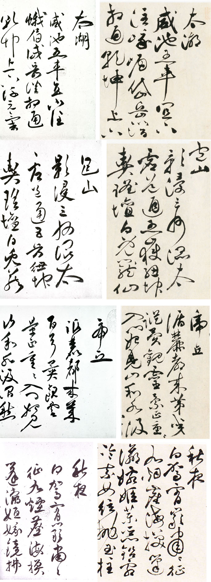 戴立強先生於2006年發表《祝允明草書自書詩卷辨偽》一文(注15),給我提供了一個路逕,因為我沿著戴先生的思路,卻得出了與戴先生完全相反的結論,但無論如何,首先要感謝戴先生的研究,正是戴先生的發現,打開了建立真偽祝書標準的第一個入口。