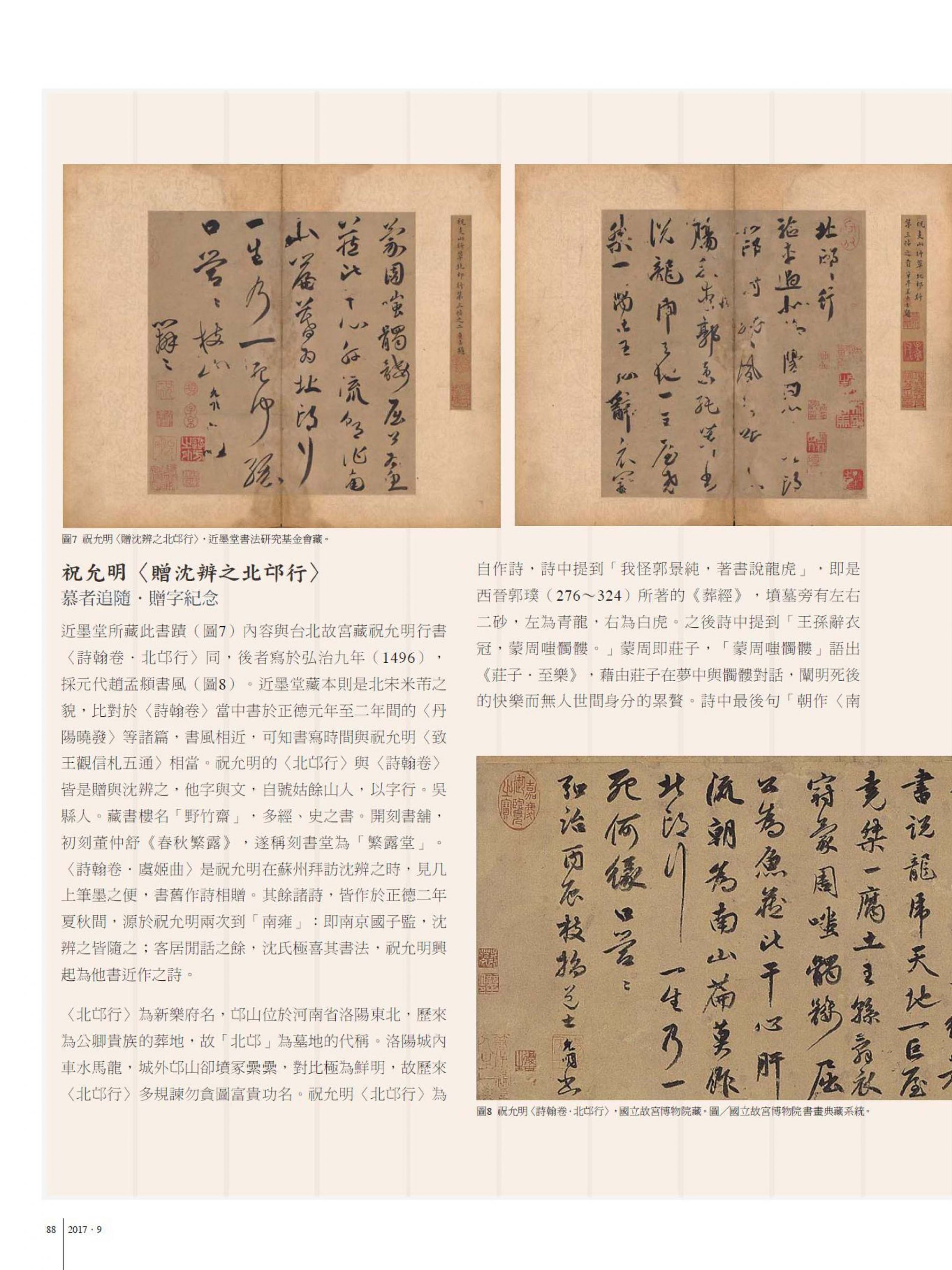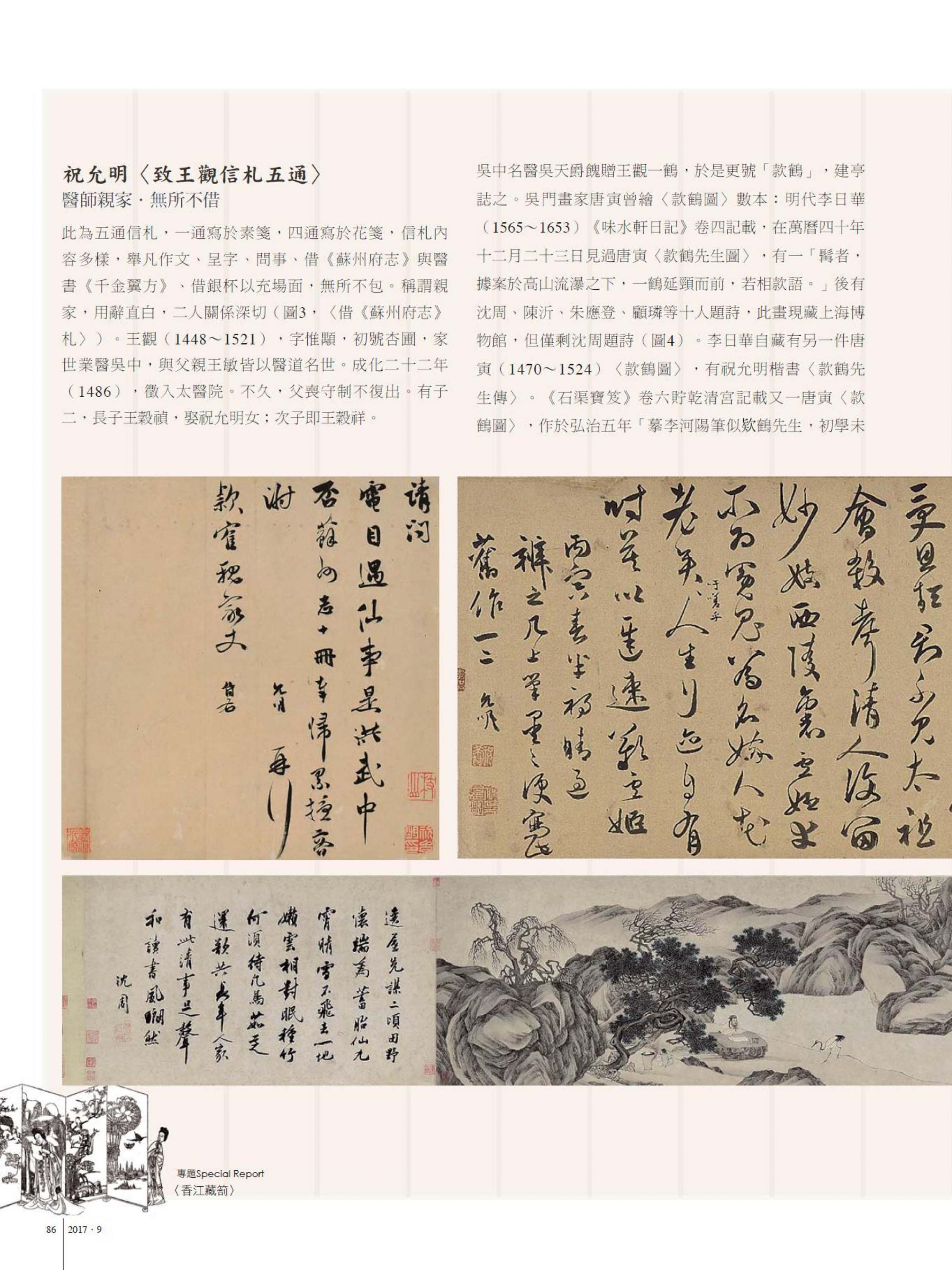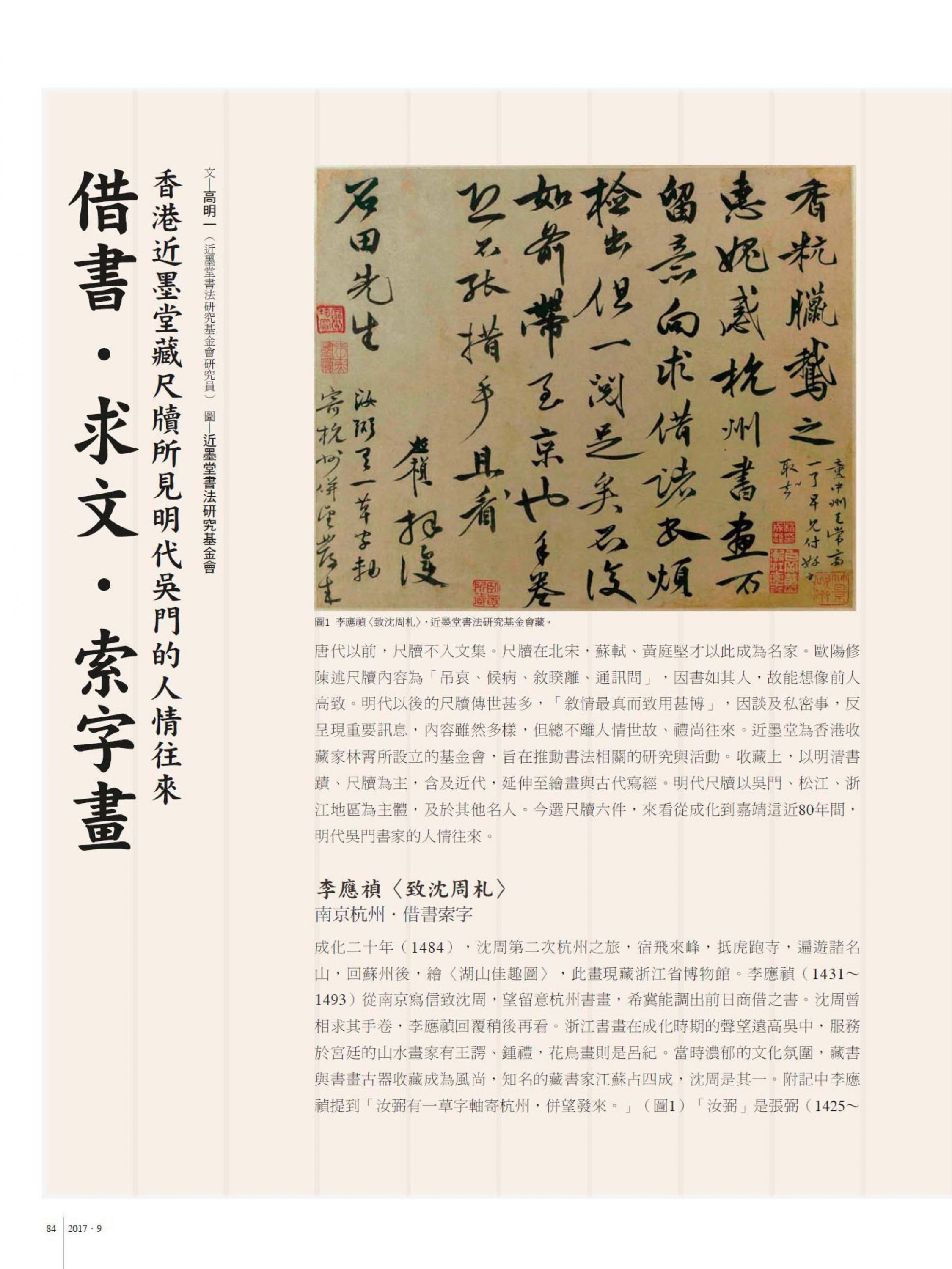 高明一:〈借書 ‧ 求文 ‧ 索字畫──香港近墨堂藏尺牘所見明代吳門的人情往來〉(《典藏 ‧ 古美術》2017年9月號,第300期)