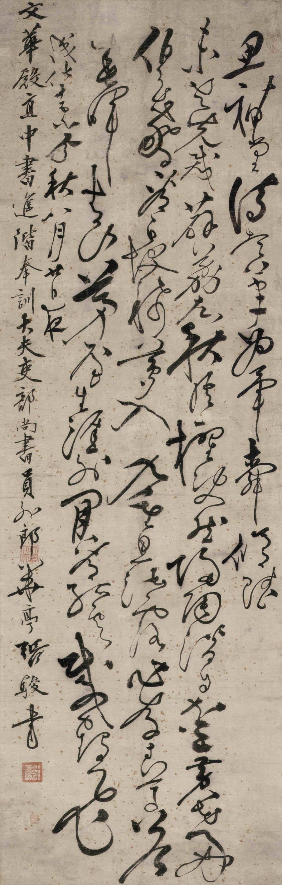 此件書蹟,為在北京已有一定身份的明代宮廷書家張駿於五十一歲時,以狂草書風寫下〈思補堂詩〉來酬答在成化元年退休的河北曲陽縣令畢玉。