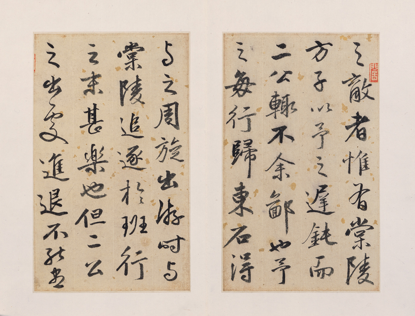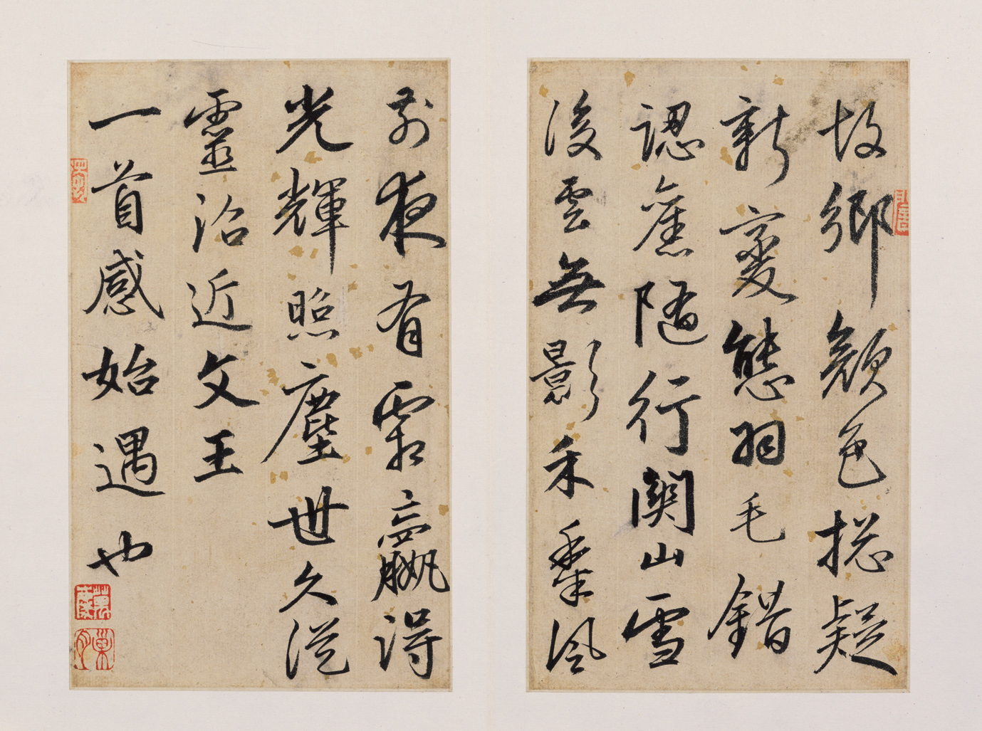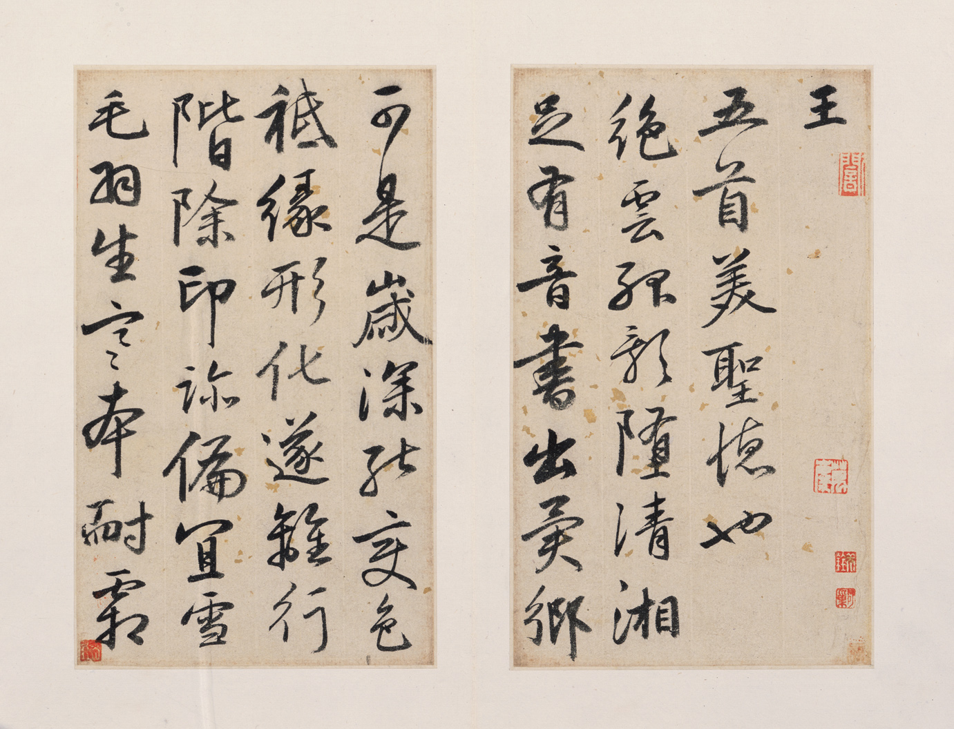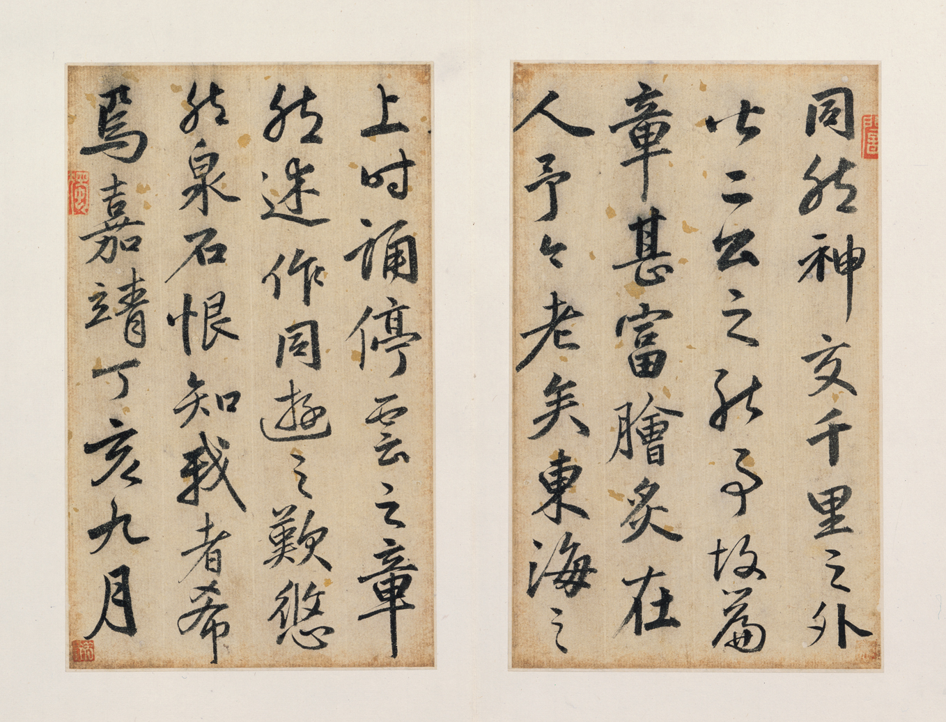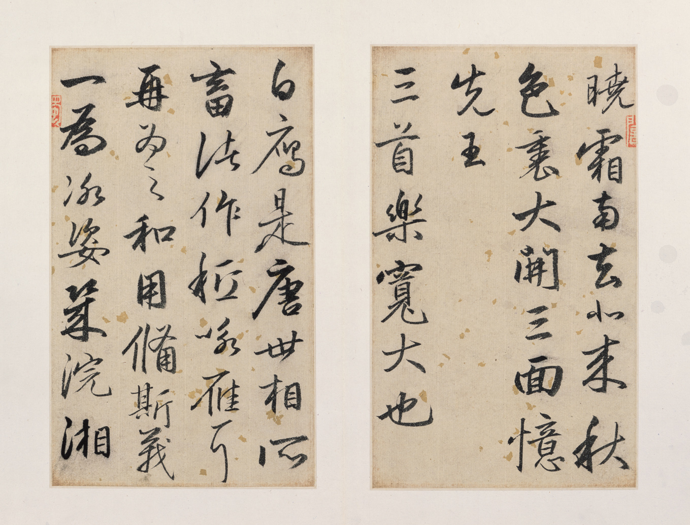 近墨堂書法研究基金會所收藏的陸深《白雁詩》冊,一直流傳於民間,未收入於清宮內府,所以整幅作品上沒有清宮的收藏璽,但不影響其文物的珍貴價值。對於古代傳世於今的作品,多會以流傳有緒的重要書畫著錄來檢證作品的真確性,於是記載於《式古堂書畫匯考》與《石渠寶笈》的陸深《白雁詩》手卷,似乎比較有較高的名聲。然而,有另一種具有說服力的檢證材料,卻比較少人所使用,即是和作品出現時代相近的刻帖,之所以少引用,主要是刻帖流傳的數量會遠比文字著錄還少得許多。令人可喜的是,陸深《白雁詩》冊正好刻於晚明的《寶翰齋帖》中。(圖1)《寶翰齋帖》全名《寶翰堂國朝書法》,選編者茅一相,刻者章田、馬士龍、龍榮甫。茅一相,字國佐,號泰華,又號康伯,浙江歸安人。浙江歸安中茅姓,時間又約在此期的有名人物為茅坤(1512-1601),茅坤的長兄毛乾(1506-1584)在萬曆十二年逝世時,撰有〈伯兄少溪公墓誌銘〉一文提到「子男二人,曰:一相、曰:一桂,俱太學生,可知茅坤是茅一相的叔父。