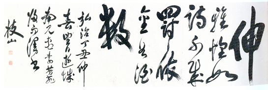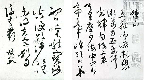 對於如此“雙胞胎”題款,蕭先生指出“排除皆真的情況,或一真一偽 ,或二者皆偽。”蕭先生的結論是:《大字草書》為真跡(圖6),《小字草書》為偽作。