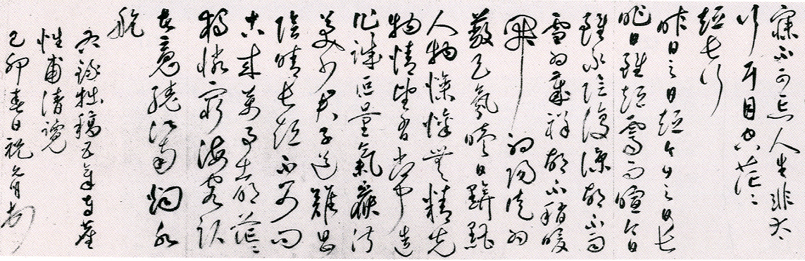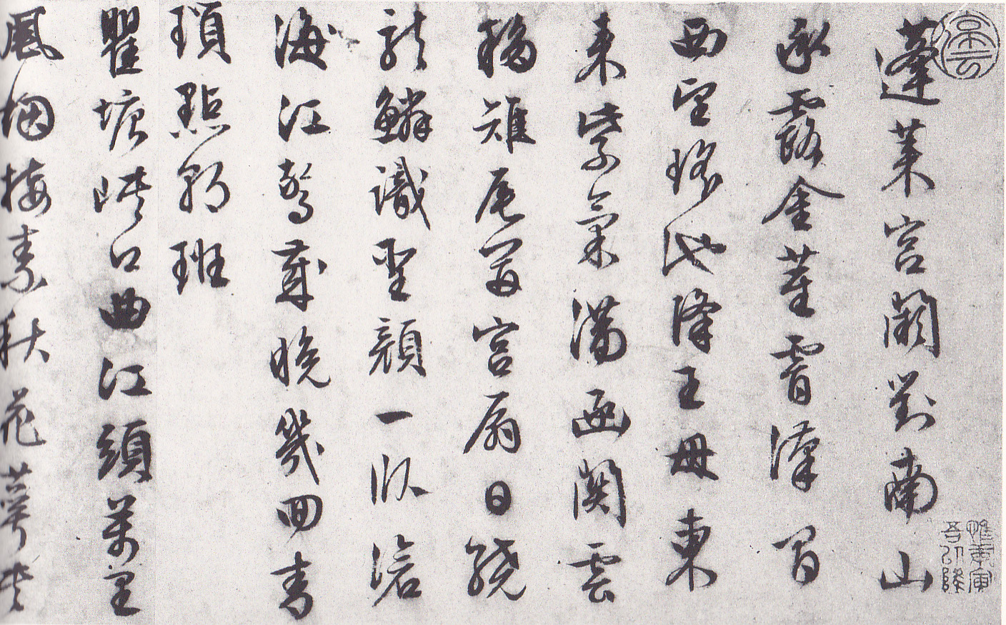 作為蕭先生參照的標准件,是劉九庵先生所認定為真蹟的《草書自詩(太湖)》(圖7,以下簡稱《太湖卷》)(注21),並不符合後文可作為真跡標準的條件。如果讀者閱畢本文,應該也不必猶豫地將這件劉先生認定的真跡歸於偽跡之列。