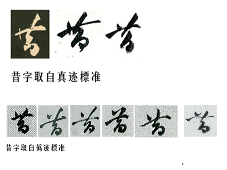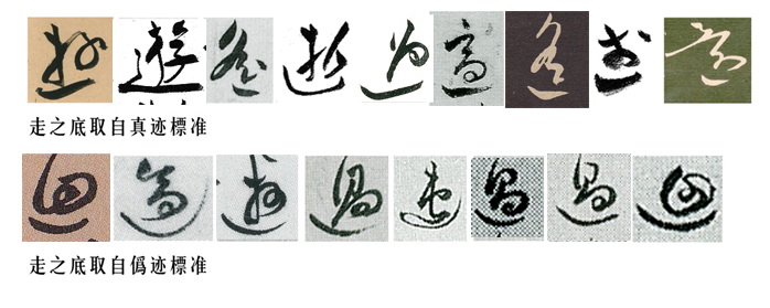 考察以上的真偽標準,我們可以發現,在所列真跡標準中,找不到一件與偽跡標準相似的作品,反過來也一樣。