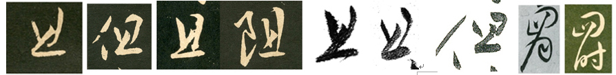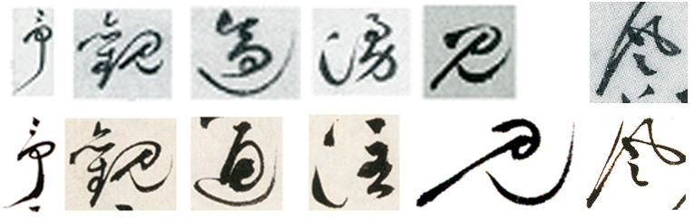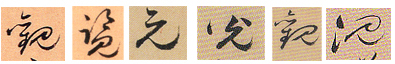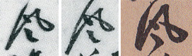 - 以上步驟一一過關後,才進入關鍵性步驟:取待鑒定書法個別單字或字組,與真偽標準件中“高價值特徵字”進行比對。所謂筆跡學所說的“高價值特徵字”是指: