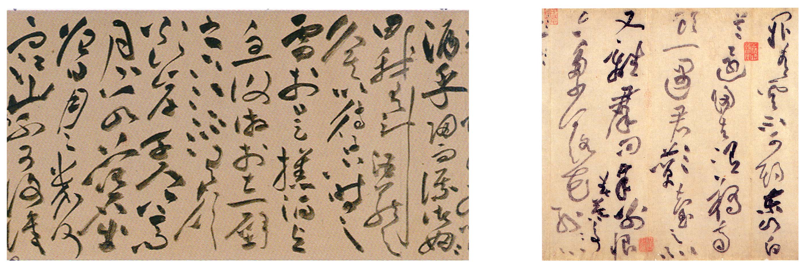 對於蕭燕翼先生的結論,我一直心存疑意,認為兩件皆偽的可能性更大,原因是:這卷《大字草書》以及蕭先生作為同期參照的幾件作品,不僅與《小字草書》疑似同人所書,都顯出筆法結字軟熟的形態。而且蕭先生的推論邏輯,也有着與戴立強先生相似的缺陷,這種邏輯合理的前提是:作為比對的另一件作品,必須是經過認證的“標準器”,而不是由前輩鑒定家認可。